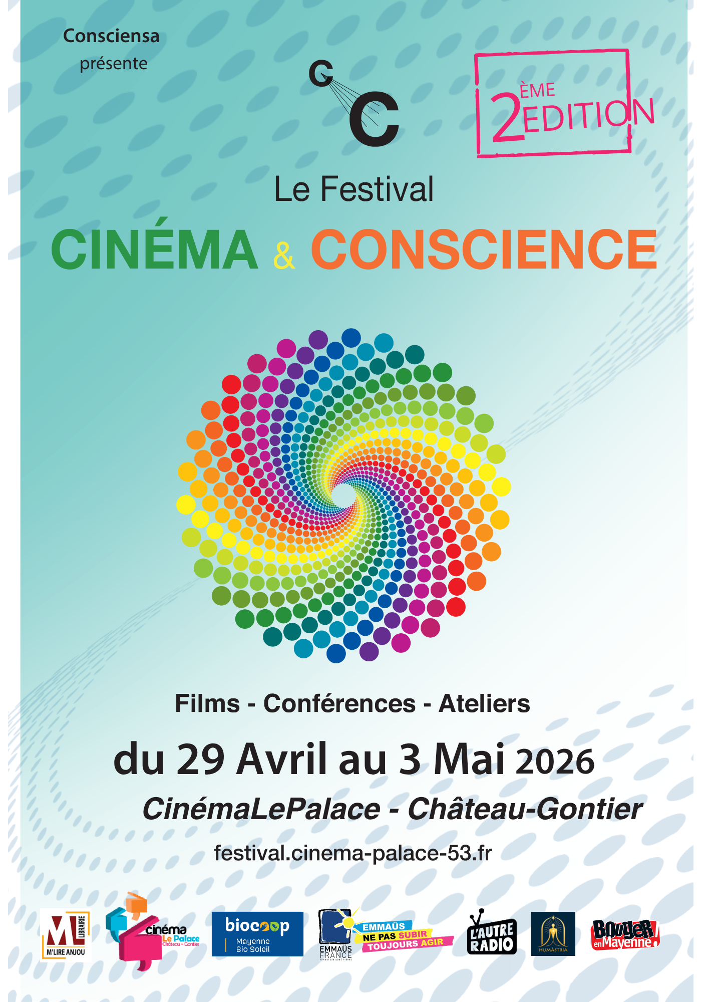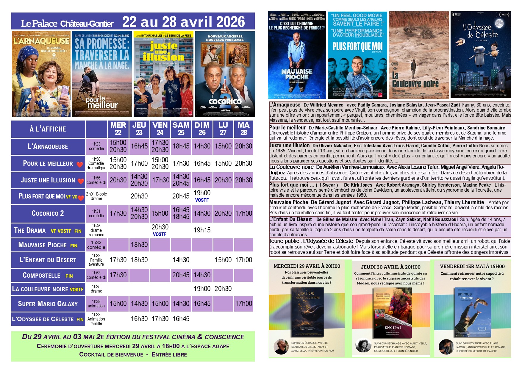 Le festival "Cinéma & Conscience" revient pour sa 2ème édition du 29 Avril au 3 Mai 2026 - tarif cinéma : 7€